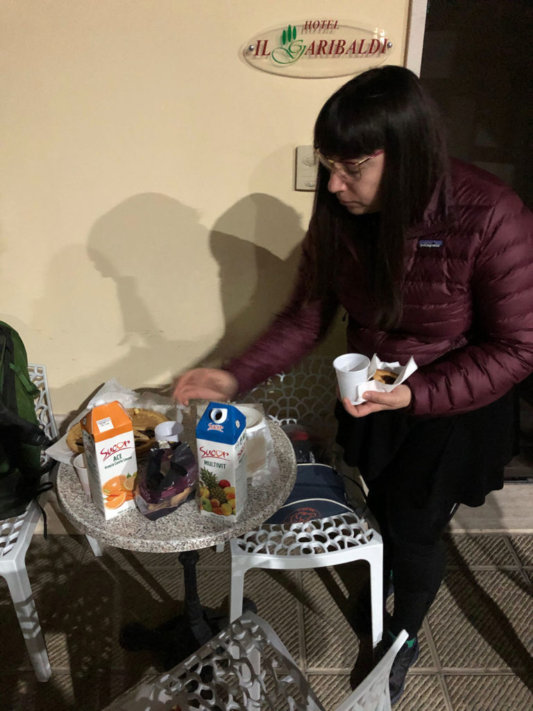 Dopo le varie prove, cotti come fegatelli, ci ritiriamo tutti nelle nostre camere e puntiamo la sveglia alle 5. Prima di andare a dormire chiediamo al ristorante dell’albergo se avremmo trovato una colazione a quell’ora. Ci rispondono con una sonora risata, tipo quella del poliziotto a cui Lebowski aveva chiesto se qualche agente era alla ricerca della sua valigetta rubata.
